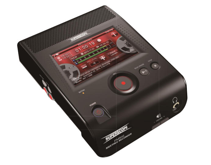 The PMR61 is clearly a different type of recorder. Its uncluttered, non-technical design is comfortable in any meeting, interview or conference room, while still compact enough to fit in a briefcase or backpack. However, easy operation is the key to the PMR61 design. Users will immediately recognize the lack of buttons and switches that often introduce risk into the recording process. With a simple top panel layout consisting of only four buttons, the user has little opportunity for error. All critical setup functions are included in the touch screen menu, which not only gives immediate status during recording, but also allows for easy setup, navigation, and operation.